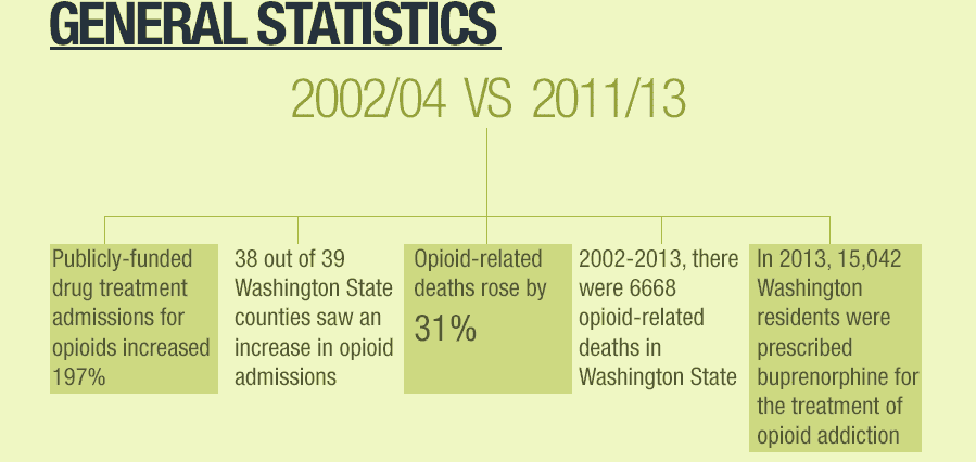 - 2002-2013, there were 6668 opioid-related deaths in Washington State